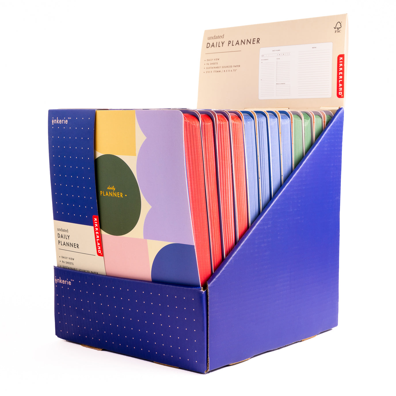 Keep your days on track with this undated planner made of 96 pages of sustainably sourced FSC paper.
